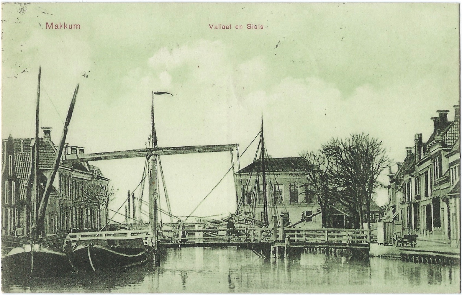 De tsien oare manlju en jonges op de fotokaart binne net bekend. De ôfstjoerster is dat wol: it wie de tolvejierrige Frouwke Frederika Margaretha Oosterhuis, berne yn 1897 yn Suwâld as dochter fan Johannes Oosterhuis, predikant yn Suwâld en Tytsjerk, en Rutgerdina van Heyningen Busch Keiser. Frouwke hie fiif bruorren en sussen, ûnder oare Rutger Adolph Benthem Oosterhuis, de Dolf dy’t sy yn har boadskip neamt. Dat boadskip slút sy ôf mei ‘uw liefhebbende Frouwke’, mei in streekje ûnder de w, en tusken heakjes foeget sy ta dat se net lulk is. It is in reaksje op de ansicht dy’t sy in dei earder fan har korrespondint ûntfongen hie. Dy kaart toant op de foarkant it noch altyd besteande Hotel De Prins en it fallaat yn Makkum en hat op de achterkant de tekst: