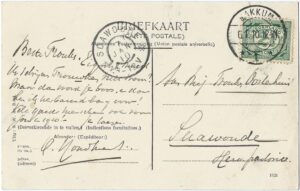 Dit is het kanaal te Suawoude Ik dank U wel voor de mooie anzigten en wensch ook U een gelukkig en gezegend jaar Komt U spoedig weer eens bij ons Wij zijn allen goed gezond. Na hartelijke groeten ook van Pa Ma Dolf uw liefhebbende Frouwke (ik ben niet kwaad)