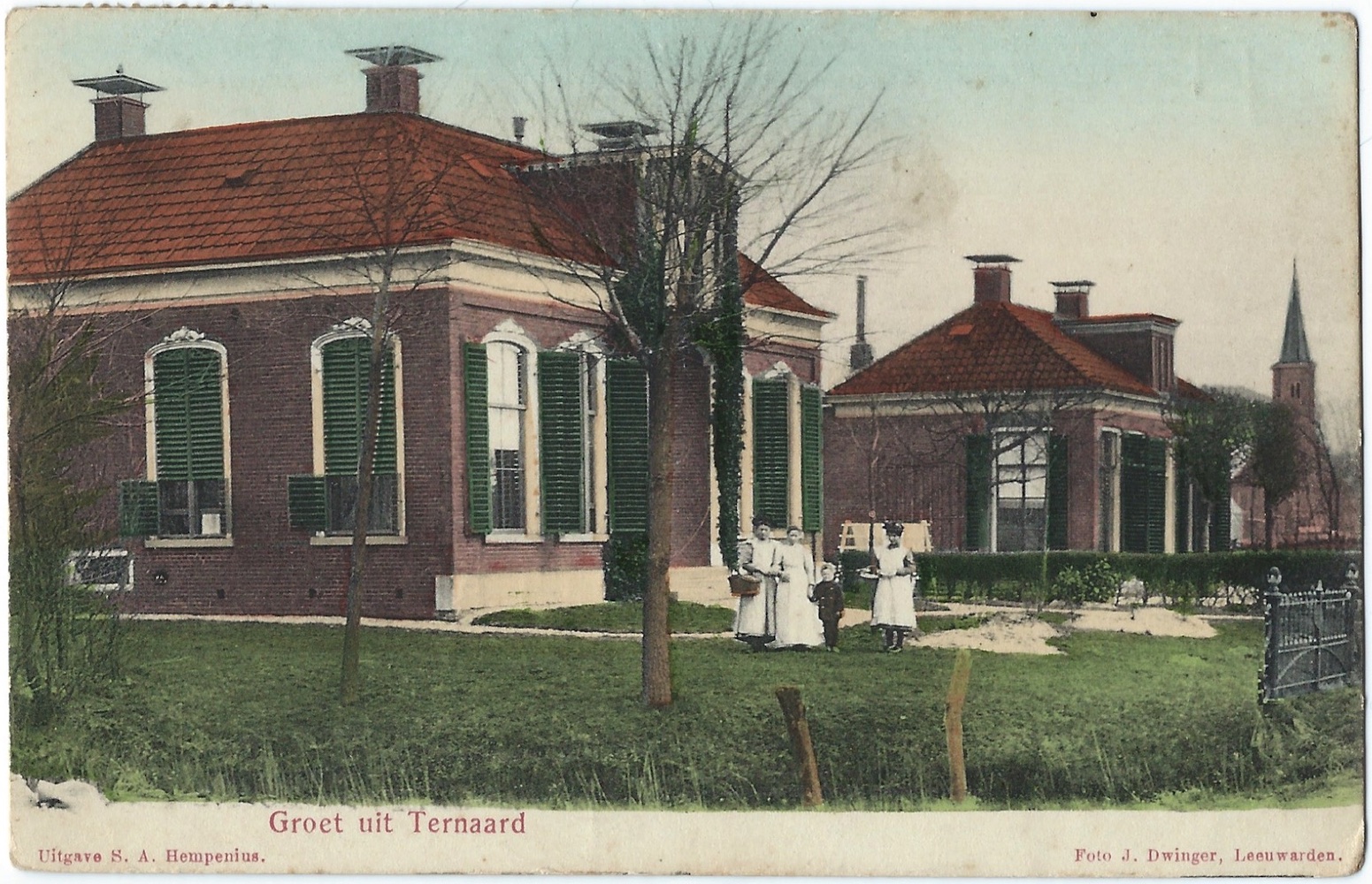 ‘Groet uit Ternaard’. Ljochtdruk, ynkleure. Yn 1915 ferstjoerd oan Oepke en Johanna Hillegonda Noordmans-Oosterhuis troch harren sweager en broer Anne Catharinus Oosterhuis.