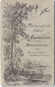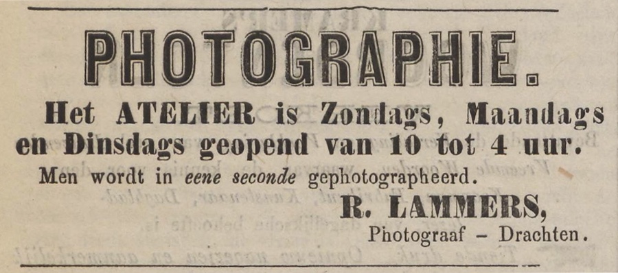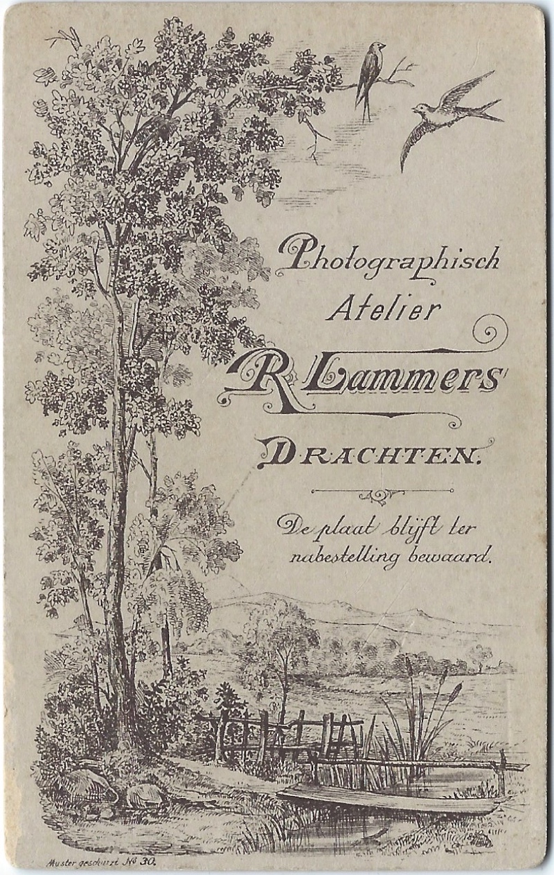 Eksimplaren fan dy orizjinele ansichten binne ek bewarre bleaun. En nêst orizjinelen fan de beide duplikaten hjirboppe haw ik ek noch in orizjineel dêr’t my gjin duplikaten fan bekend binne. De orizjinelen binne skerper en better kadere as de pirateduplikaten. Ek jouwe sy de namme fan de fotograaf, dy’t op de duplikaten fuortpoetst is. It giet om Roelof Lammers (1853–1910), yn 1879 al aktyf as fotograaf, dy’t in foto-atelier hie op de Bopperein, tsjintwurdich de Súdkade. Lammers paste nije techniken ta dy’t de foarhinne lange slutertiid flink bekoarten en advertearre dan ek mei de oanbefelling ‘Men wordt in eene seconde gephotographeerd.’ Fierders ferkocht er skilderij- en fotolisten, stielgravueres en naaimasines, en hy en syn broer Broor lieten harren ek ynhiere om foarstellings mei in toverlantearne te jaan.