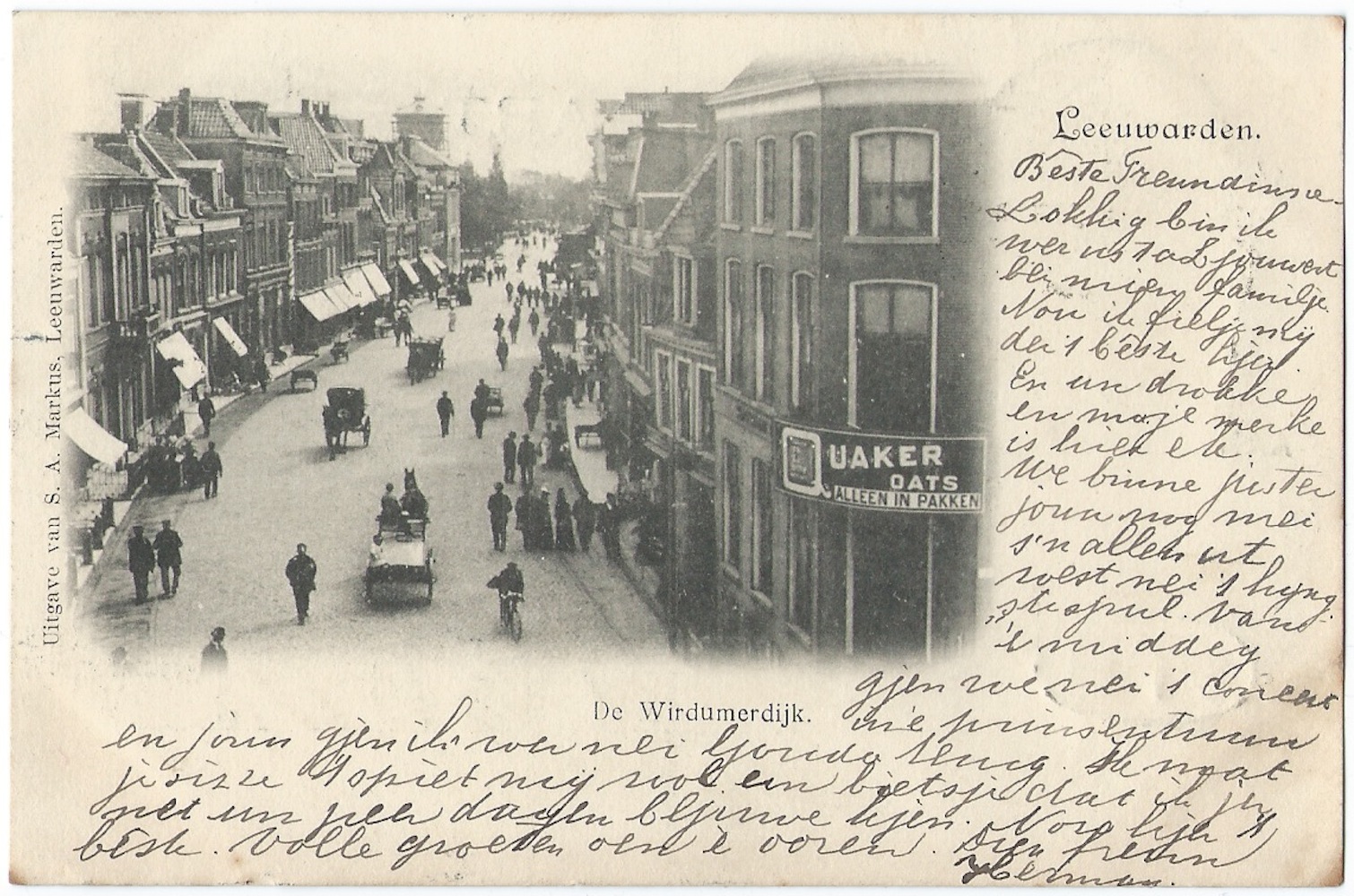 - ‘Leeuwarden.’ (r.b.), ‘De Wirdumerdijk.’ (m.û.), ±1898–1901. Ljochtdruk, 92×140 mm. Utjûn troch S.A. Markus, Ljouwert. Poststimpels Ljouwert