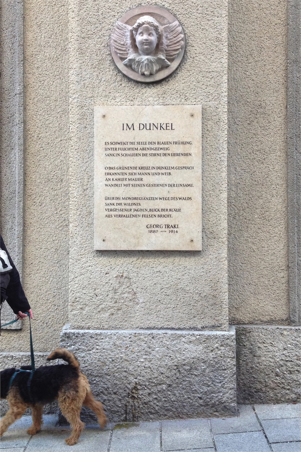 In fers fan Trakl oan de gevel fan Zum weißen Engel,